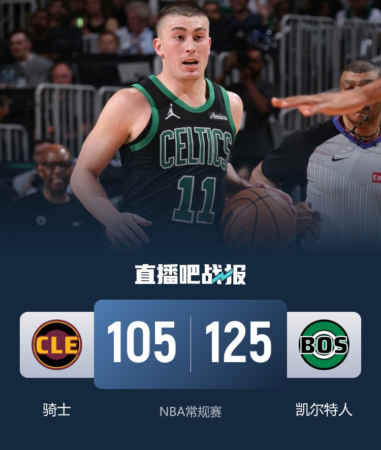 凯尔特人(2-3):布朗30分5板4助、豪泽21分3板1助、怀特19分5板4助、西蒙斯14分2助、米诺特11分14板2助3断、科塔10分13板3助2断、加尔扎10分5板2助、普理查德10分3板10助3断、谢尔曼3板1助、蒂尔曼1板